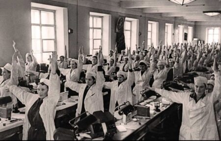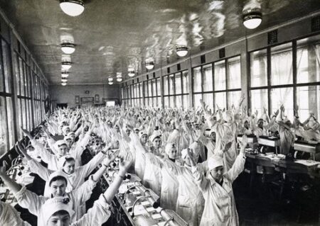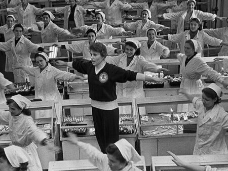 Témoignage: « Il se trouve que j’ai travaillé dans une usine de bijoux en URSS. Là, deux fois par équipe, tout le monde, sans exception, faisait de la simple gymnastique ‘industrielle’. J’étais très jeune à l’époque et, au début, cela m’a semblé idiot. Mais, après quelques mois de travail sédentaire, j’étais déjà heureux de m’échauffer et je faisais cette gymnastique avec joie. Ce n’est que maintenant que je réalise à quel point c’était génial ».