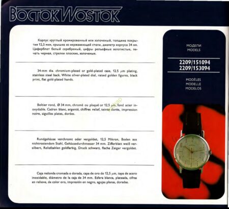Mentions sur le calibre : logo Vostok et 2209 sur un pont.