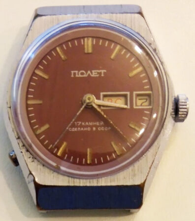 Avec un bracelet ZIM de la Fabrique de Montres Maslenikov avec les initiales de la fabrique ZIM et la mentions нерж (inox):