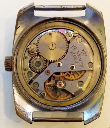 Mentions sur le calibre : N° de série (19490) sur la platine, logo de Raketa (la raquette symbolisée), 2609.H et 19 камней sur le pont