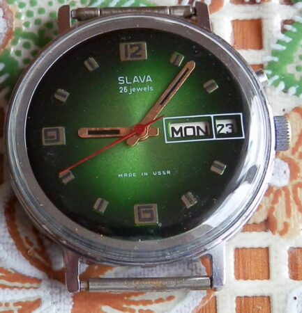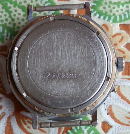 Bracelet : Métallique soviétique 18mm avec logo de la Fabrique de Bijoux de Moscou et la mention Ц3р30к (3 roubles 30 kopecks) à l’intérieur.