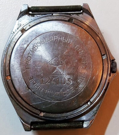 Marquage du fond: Противоударные бaлaнз (mouvement antichoc), Пылевлагозащищенные : étanche à l’eau et à la poussière, 1241032, et marque de qualité de l’URSS