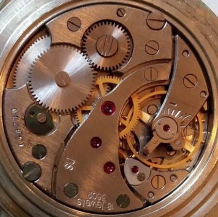 Mentions sur le calibre : 18 jewels, 3602 et SU (Soviet Union) sur un pont, n° de série (148770) sur un autre