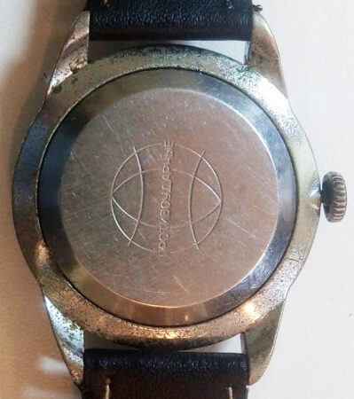 Gravure sur le fond : Globe terrestre avec en guise d’équateur la mention противоударные (antichoc). Perlage à l’intérieur.