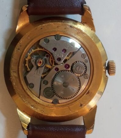 Mentions sur le calibre : n° de série (58236) sur la platine, logo Vostok (B dans un cercle), JEWELS18 et 2209 sur un pont.