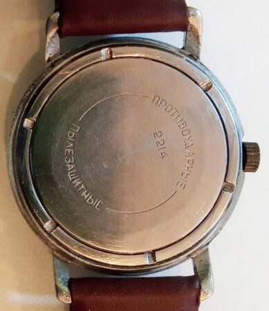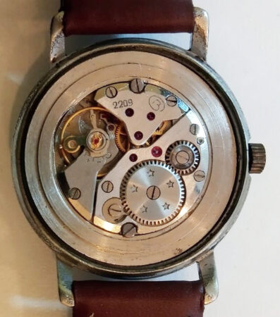 Cette montre a été restaurée de manière imparfaite : le calibre est du bon modèle mais de facture plus récente (pas de n° de série), le fond n’est pas le bon (2214 et non 2209),