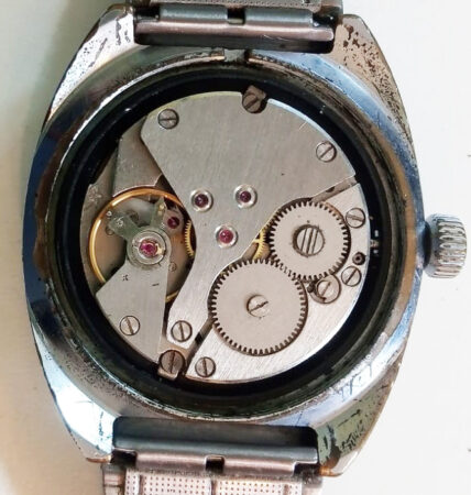 Mentions sur le calibre : logo Poljot (couronne) sur la platine.