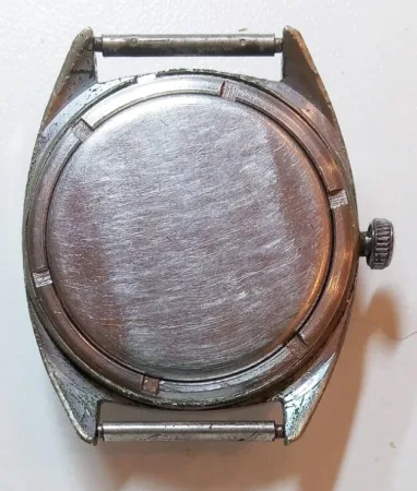 Mentions sur le calibre : 2614.HA et SU (Soviet Union) sur le pont, n° de série (19438) et logo Raketa (raquette symbolisée) sur la platine.