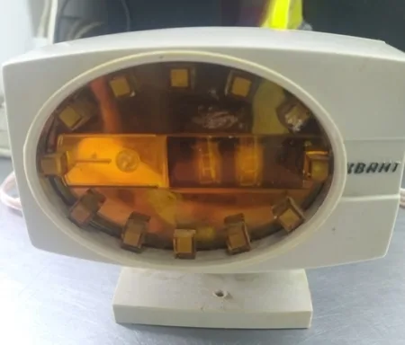 Les chiffres indiquent les minutes et les indications des heures se présentent sous la forme de douze ampoules à incandescence. Il n’y a pas d’indication « avant midi » ou « après midi ». L’angle d’inclinaison du boîtier est réglable.