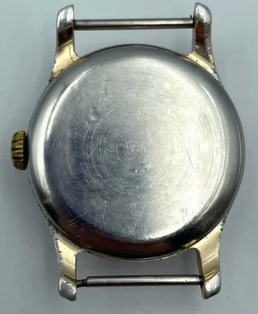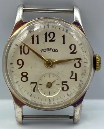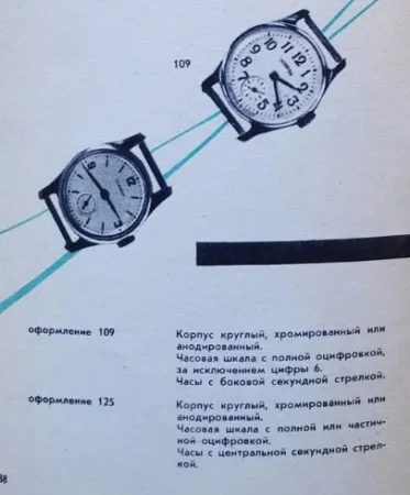 Comme cette montre est au catalogue 1964 et que le mécanisme est de 1954, il s’agit probablement d’un ré-emboitage. L’ensemble boitier/cadran est probablement de la Fabrique de Montres de Petrodvorets (sinon de la Fabrique de Montres de Maslenikov).