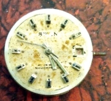 Cette montre est probablement d’origine hong-kongaise.Marque: SwanMécanisme: Zaria 2009BPour les montres soviéto-hong-kongaises: voir ici