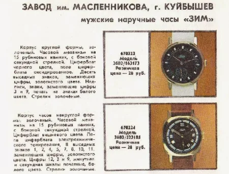 Cet ensemble cadran-aiguilles au catalogue ГЛАВКООППОСЫЛТОРГ 1978: