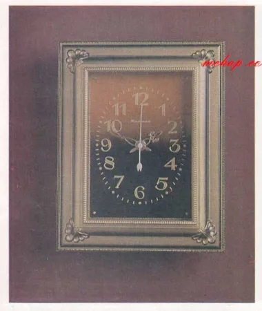 Carte postale de nouvel An (1985) avec la photo d’une horloge de marque Yantar de la Fabrique d’Horloges d’Orel entourée de décoration de Nouvel An, avec la mentiopn « с новым годом! » (Bonne nouvelle année ») en doré.