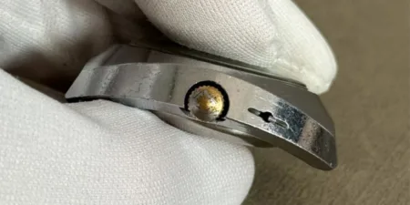 Boîtier de laiton chromé assymétrique type 141 avec bouton de reset de la date à 2 heures type 621