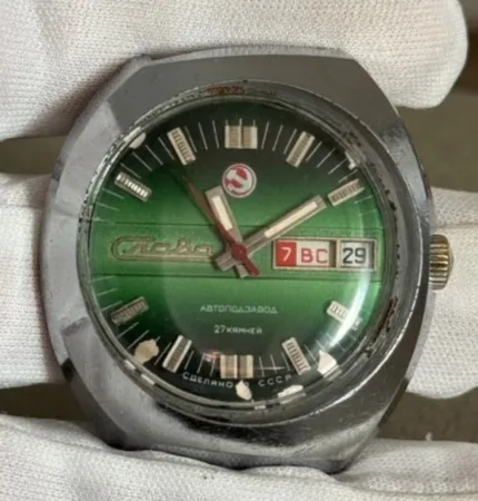 Montre bracelet automatique avec calendrier jour et date, pour l’exportation, de la Usine : 2e Fabrique de Montres de Moscou