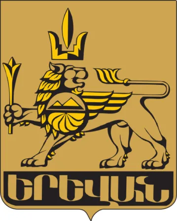Boîtier de plastique avec l’emblème de la ville d’Erevan, représente un lion ailé d’Erebouni (une forteresse de la civilisation de l’Urartu, bâtie au début du VIIIe siècle) avec un bouclier de bronze à la circonférence bleue. Le lion porte l’arbre de vie en guise de couronne, tient un bâton de pouvoir et a sur la poitrine un bouclier englobant le symbole de l’éternité et les montagnes de l’Ararat.