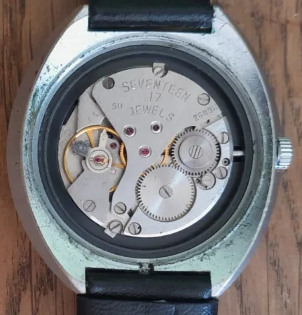 Mentions sur le calibre : SEVENTEEN 17 JEWELS sur un pont, N° de série sur la paltine. Couronne poljot sur la platine
