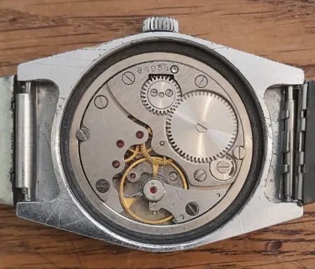 Mentions sur le calibre : ЗИМ 2602 sur la platine, n° de série (84956) sur le pont