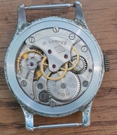 Mécanisme : 41M (désigné ultérieurement 2608, c’est le Pobeda à trotteuse) à 15 rubis