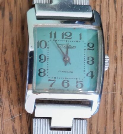 Bracelet soviétique, métallique, avec sur la boucle déployante un logo inconnu et la mention П5b 80k