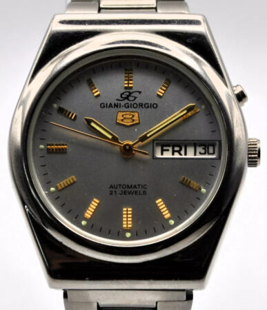 Le nom semble italien mais est plutôt imité de l’italien (ou Gianni prend deux « n »). On peut supposer une marque asiatique. De nombreuses Giani-Giorgio embopîtent du quartz japonais.