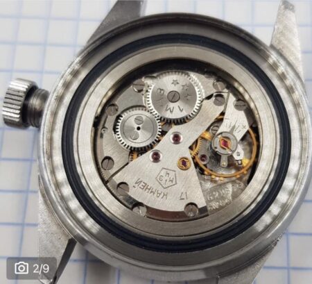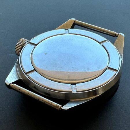 Toutes les aiguilles de ce modèle se retrouveront plus tard sur les modèles Amphibia. La lunette en bakélite ne l’a pas été, probablement parce qu’elle serait moins résistante que celle en métal. La couronne est vissée, et avec son fond de boîtier libre serré par un anneau de fixation.