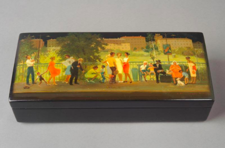 Cependant, comme les icônes n’étaient plus de saison, les artistes de Mstera maîtrisèrent la production de boites et la technique du papier mâché. Et leur créativité d’artistes s’incarne dans la peinture miniature. L’habileté exceptionnelle des artistes et la méthode ancienne de l’émulsion au jaune d’œuf ont fait de ces boîtres des œuvres d’art.