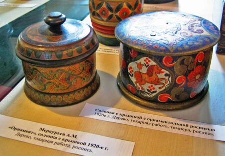 Un marchand du nom de Korobov a installé une usine à Fedoskino, un village près de Moscou, produisant des boîtes en papier mâché décorées et laquées. Fedoskino est devenu la première école de miniatures avec un style et une tradition distinctifs. A Kholui, les peintres d’icônes étaient les moines du monastère de la Trinité. De nombreuses icônes ont été produites et livrées dans les provinces du nord de la Russie, notamment à Vologda, Arkhangelsk, Pétersbourg et dans la capitale russe elle-même.