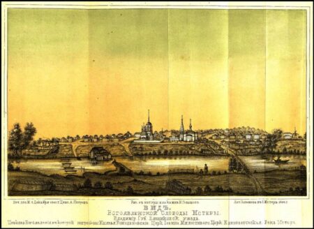 La première mention de Mstera remonte à 1609. Ses artistes excellaient dans la broderie, le travail du métal en argent et en cuivre, les icônes et les fresques. À la fin du XIXe siècle, Mstera (le nom du village vient de Masters) est devenue le plus grand centre de peinture d’icônes de Russie. Des maîtres étaient invités à Moscou, Saint-Pétersbourg et Novgorod pour peindre des églises et les restaurer.