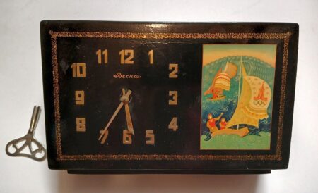 Enfin, nous y voilà!, une production de miniature sur horloge a été initiée à la Fabrique d’Art prolétarien de Mstera sur base d’horloges modèle HЧ-38 (mécanisme 86155) fournies par la Fabrique « Tochmach » de mécanique de précision de Vladimir