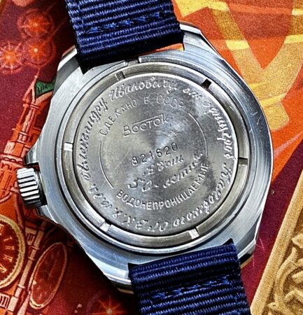 Gravure sur le fond : BOCTOK 821620, водонепроницаemye (étanche)