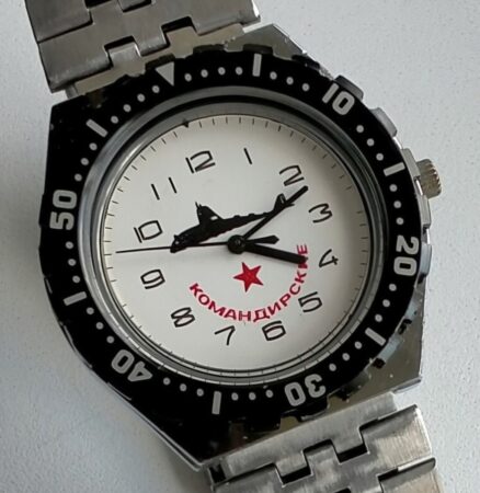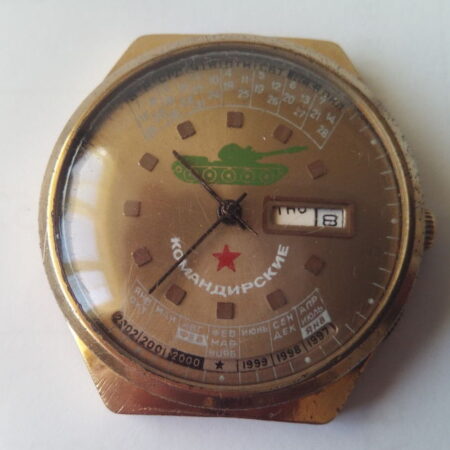 L’engouement pour les kомандирские (Komandirskie, « Commandant ») tank et sous-marin a faire naître, dans les années ’90, une petite industrie de surimpression genre « Komandirskie » de cadran de montres Raketa.