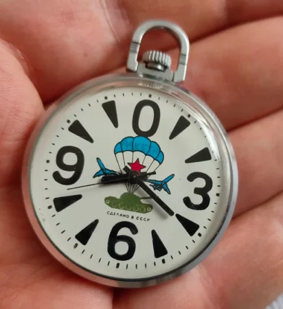 Un exemplaire sans mention de marque mais qui associe les motifs « tank » et « parachutiste » + made in URSS