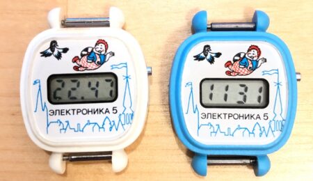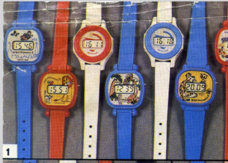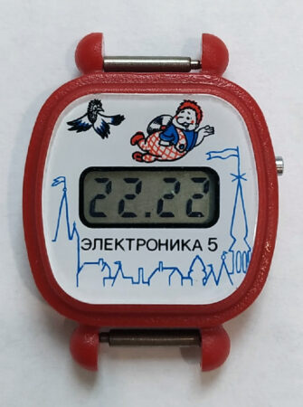 Montre bracelet à quartz et LCD (écran à cristaux liquides) pour enfant « Karlsson », produite par la Fabrique Elektronika du Combinat électronique « Integral », à Minsk.