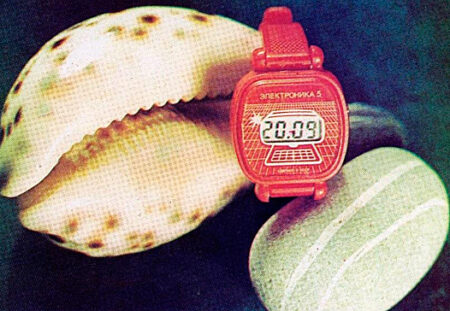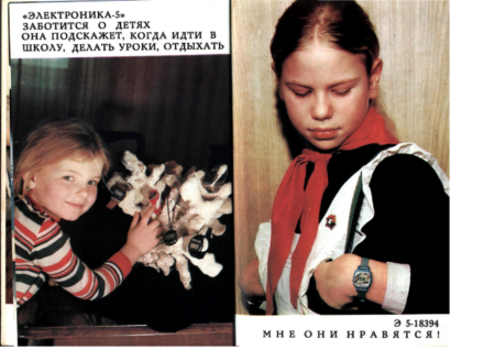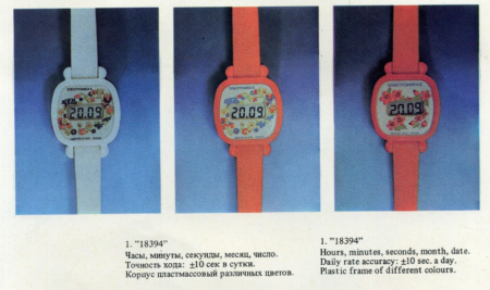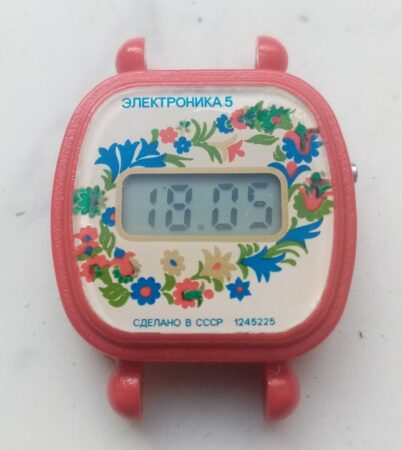 C’est dans le catalogue Elektronika de 1985 qu’apparaissent les Электроника 5 pour enfant. Ces bracelet à quartz et LCD (écran à cristaux liquides) à boitier pour enfant à motif floral, produite par la Fabrique Elektronika du Combinat électronique « Integral », à Minsk. Si « Elektronika 5 » est la marque pour le public, la référence du modèle est 18394