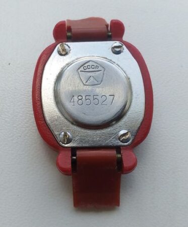 Les premiers boitiers ont un fond métallique, vissé, et frappé d’un numéro, avec ou sans la marque de qualité de l’URSS: