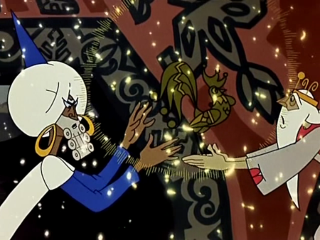 Le conte a inspiré un film d’animation réalisé en 1967 par Alexandra Snejko-Blotskaïa (Алекса́ндра Гавриловна Снежко-Блоцкая). Née le 21 février 1909, son premier emploi comme bibliothécaire est à l’origine de sa passion pour le folklore et les contes russes. Elle fait des études en peinture et graphisme et entre en 1934 au studio Mejrabpomfilm, dans l’atelier d’animation, puis en 1936, au studio Soyuzmultfilm. Avec Vladimir Polkovnikov, elle réalise « Le Garçon ensorcelé » qui s’inspire du conte de Selma Lagerlöf « Le Merveilleux Voyage de Nils Holgersson » à travers la Suède. Depuis 1956, elle travaille de manière indépendante et se fait se fait connaitre pour ses adaptations de contes de fées et de mythes populaires (dont ceux de la mythologie grecque antique), ainsi que des adaptations des œuvres de Pouchkine, Kipling, Arkadi Gaïdar. Son « Conte du coq d’or », d’une durée de 31 minutes, date de 1967. il a été scénarisé par Viktor Shklovsky et ka lusique a été composée par Vitaly Geviksman.