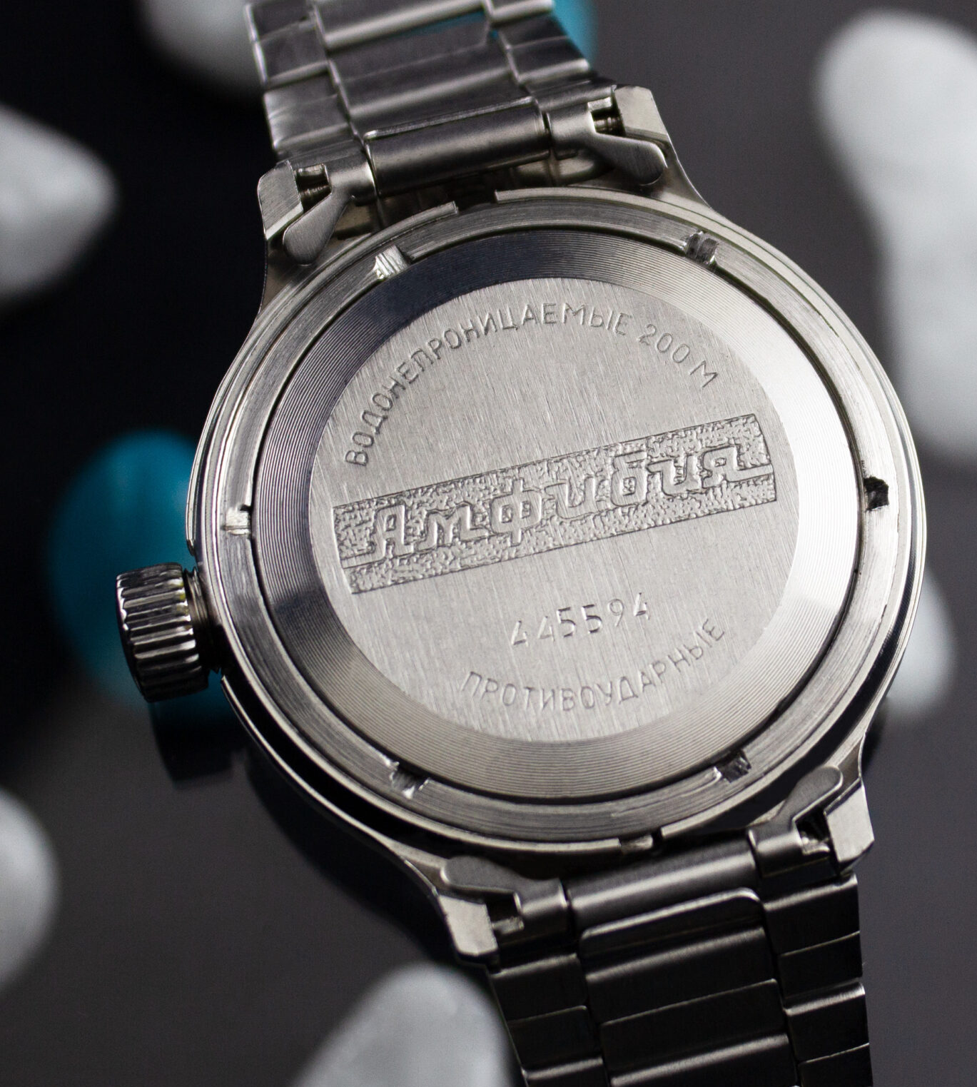 Gravure sur le fond : 44594, Амфибия, водонепроницаemыe 200M (étanche à 200 mètres), противоударные (antichoc)