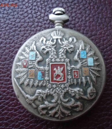 Les « petites armoiries » (Малый государственный герб Российской Империи)représentées sur la montre font figurer l’aigle impérial, l’écu de saint Georges, l’ordre de Saint-André et autour, les armoiries d’Astrakhan, de Sibérie, de Géorgie, de Finlande, de Kiev-Vladimir-Novgorod, de Tauride, de Pologne et de Kazan. Les armoiries sont celles qui étaient en vigueur jusqu’en 1917: