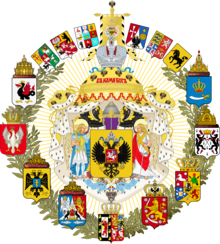 Elles se distinguent des « grandes armoiries » (également en vigueur jusqu’en 1917) qui font figurer sur leur pourtour, autour de l’aigle bicéphale russe flanqué des archanges saint Michel et saint Gabriel, qui en occupent le centre4, les armoiries de chacune des terres composant l’Empire. Les armoiries supérieures sont les armes composées :