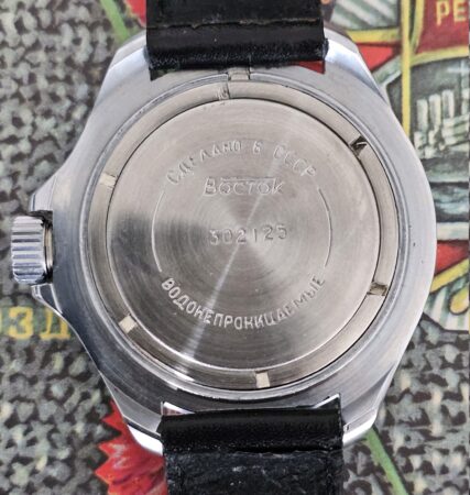 Gravure sur le fond : BOCTOK, Сделано в СССР (fabriqué en URSS), 302125, водонепроницаemye (étanche)