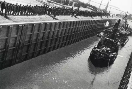 Deux photos de l’album consacré au grand chantier du canal Baltique-Mer Blanche (1930):