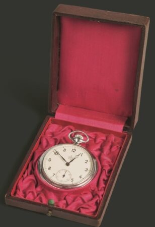 Maïakovski a acheté cette montre en 1915 après une tournée dans les villes russes. En 1915, après avoir gagné un peu d’argent en se produisant dans les villes russes, Maïakovski achète une montre. Cependant, le poète n’a pas utilisé cette montre pendant longtemps ; lorsqu’il partait en voyage d’affaires à l’étranger, il achetait des montres de nouveaux modèles. Et V. Maïakovski a laissé cette montre à sa famille.