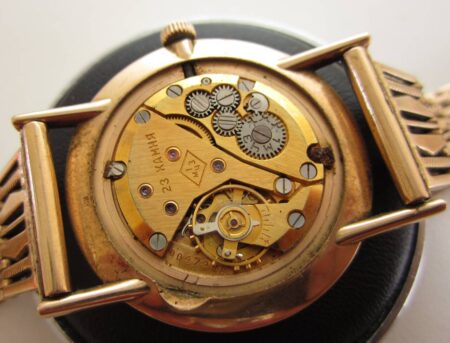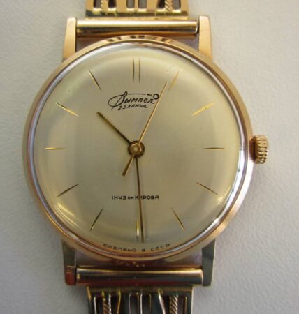 Boîtier de laiton plaqué or (poinçon 583 au dos – voir ici pour les poinçons soviétiques)