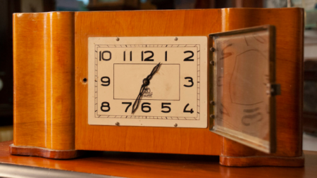En bois vernis, deuxième type de cadran (à chiffres ronds art déco) voir le type 1 – voir le type 3