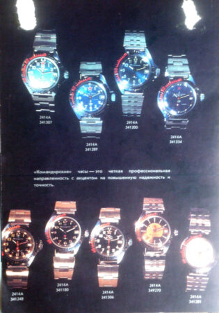 Ce modèle connaît quelques variantes (couronne Amphibia et lunette dorée, ce qui indique un modèle forcément post-soviétique, couronne Komandirskie et lunette dorée, couronne Komandirskie et lunette chromée). La trotteuse est le plus souvent dorée, mais parfois rouge. Les fond diffèrent selon les années et la destination, les boîtiers varient (341 chromé, 349 doré, 339 avec la couronne à deux heures). Ce modèle est le plus courant (boîtier 341, couronne et trotteuse dorées).