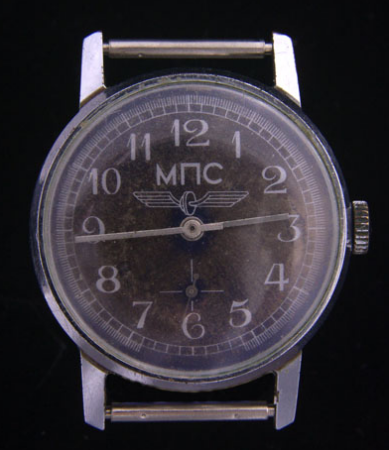 Cadran à la marque du Ministère des chemins de fer de l’URSS (Министе́рство путе́й сообще́ния СССР – МПС СССР)