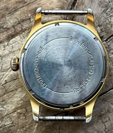 Gravure sur le fond : En cercle : противоударные (antichoc) пылевлагозащищенные (étanche à l’eau et à la poussière). Perlage à l’intérieur.