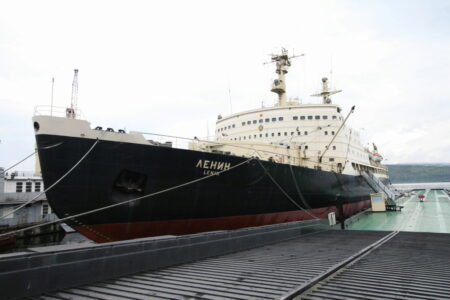 Le brise-glace Lénine (en russe : Ле́нин), lancé le 6 décembre 1957 à Léningrad, fut le premier navire civil (et de surface) à propulsion nucléaire dans le monde. Il était propulsé par deux réacteurs nucléaires et quatre turbines à vapeur Kirov alimentent des générateurs reliés à 3 jeux de moteurs électriques et d’axes de transmission. Les moteurs électriques mettent en action 3 hélices de propulsion, 2 sur le traves et 1 centrale. Il pouvait atteindre 18 noeuds. Le navire possédait également 3 moteurs électriques auxiliaires autonomes.