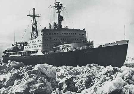 Le brise-glace Lénine (en russe : Ле́нин), lancé le 6 décembre 1957 à Léningrad, fut le premier navire civil (et de surface) à propulsion nucléaire dans le monde. Il était propulsé par deux réacteurs nucléaires et quatre turbines à vapeur Kirov alimentent des générateurs reliés à 3 jeux de moteurs électriques et d’axes de transmission. Les moteurs électriques mettent en action 3 hélices de propulsion, 2 sur le travers et 1 centrale. Il pouvait atteindre 18 noeuds. Le navire possédait également 3 moteurs électriques auxiliaires autonomes.